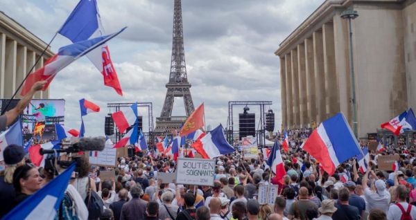 Δεκάδες διαδηλώσεις σε ολόκληρη τη Γαλλία κατά των μέτρων που ανακοίνωσε ο Μακρόν, του εμβολιασμού και του υγειονομικού πάσου. Ακροδεξιός και υποψήφιος πρόεδρος στις εκλογές του 2022 ένας εκ των ηγετών των κινητοποιήσεων στο Παρίσι