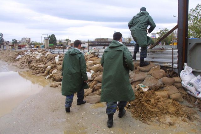 Ο ποταμός έχει ξεφύγει πλήρως από τα όρια της κοίτης του. Οι ποσότητες του νερού είναι μεγάλες και τα αναχώματα δεν μπορούν να συγκρατήσουν πλέον τη ροή.