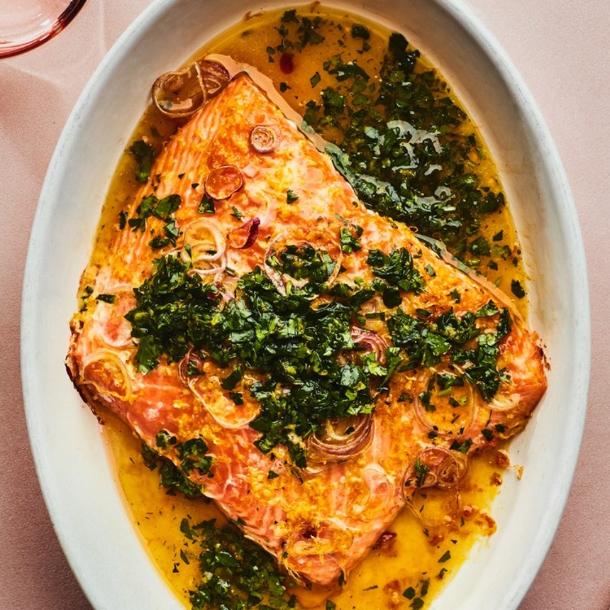 Ψητό φιλέτο σολωμού αρωματισμένος με εσπεριδοειδή και βότανα