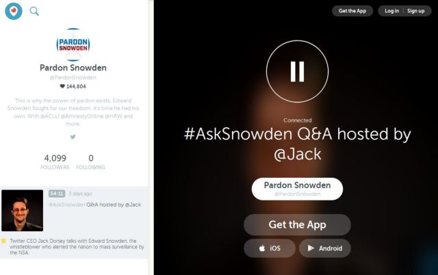 Ο Έντουαρντ Σνόουντεν απευθύνθηκε μια ακόμα φορά στο διεθνές ακροατήριο, παραχωρώντας συνέντευξη στον Τζακ Ντόρσι, τον επικεφαλής του Twitter, σε ζωντανή μετάδοση μέσω Periscope. O άνθρωπος που αποκάλυψε την μαζική παρακολούθηση από τις αμερικανικές μυστικές υπηρεσίες, εστίασε στην αυξανόμενη συσσώρευση καλά δομημένων πληροφοριών για κάθε χρήστη του Διαδικτύου στα χέρια επιχειρήσεων αλλά και τον κίνδυνο της κατάχρησης εξουσίας.