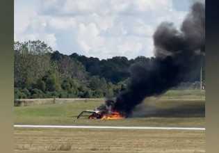 Σε βίντεο που δημοσιοποιήθηκαν σε πλατφόρμες κοινωνικής δικτύωσης καταγράφεται η στιγμή που το αεροσκάφος συντρίβεται σε χωράφι και τυλίγεται στις φλόγες.