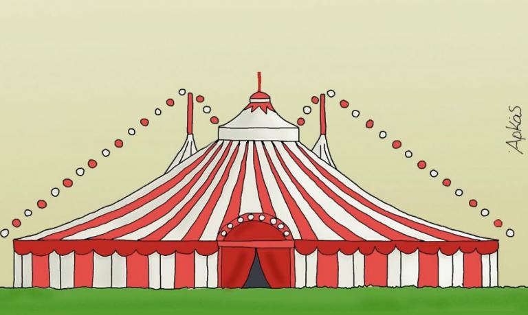 Ο δημοφιλής σκιτσογράφος παρομοιάζει την κυβέρνηση με τσίρκο, σημειώνοντας πως θα παραμείνει ανοιχτό για πέντε ακόμα παραστάσεις, όσες απομένουν μέχρι τις εκλογές.