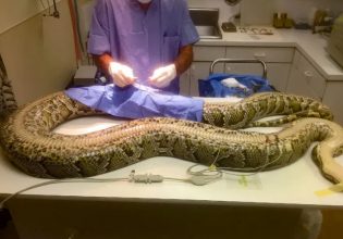 Το φίδι εμφάνισε σημάδια δυσφορίας μετά από μια συνήθη συνεδρία σίτισης.
