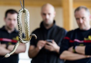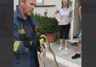 Οι ένοικοι όταν είδαν το φίδι κατάφεραν να διατηρήσουν την ψυχραιμία τους και να καλέσουν τον Σύλλογο Προστασίας Άγριας Ζωής