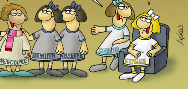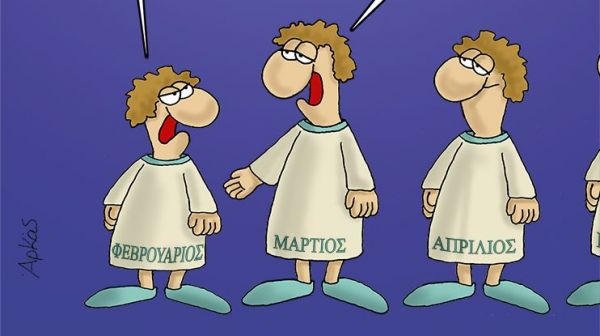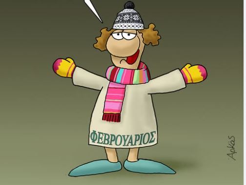Στο σκίτσο του Αρκά ο Φεβρουάριος μιλάει με την Τρίτη και ο διάλογος είναι απολαυστικός.