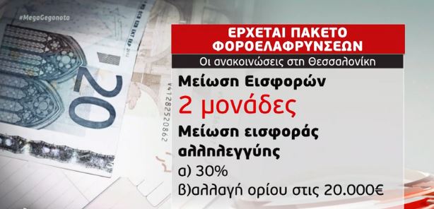 Το πακέτο των φοροελαφρύνσεων που ετοιμάζεται από την κυβέρνηση και θα εξαγγελθεί από τον Πρωθυπουργό στη Θεσσαλονίκη θα συνοδεύεται και από τον τρόπο αξιοποίησης της ρευστότητας των 77 δισ. ευρώ από το Ταμείο Ανάκαμψης και το νέο ΕΣΠΑ