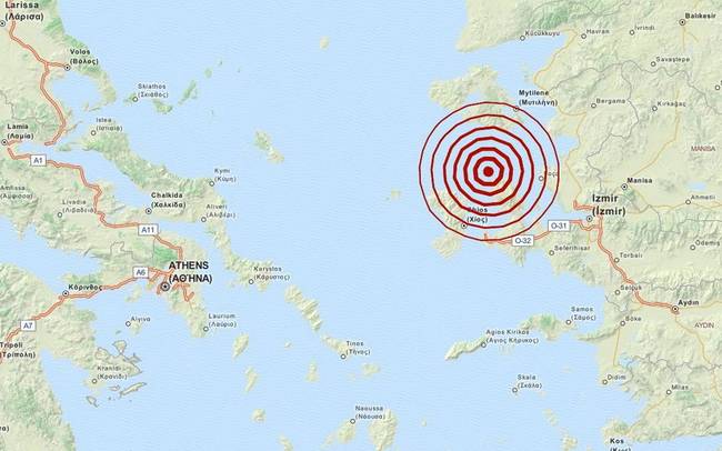 Μια σεισμική δόνηση ξύπνησε σήμερα στις 07:13 τη Λέσβο και τη Χίο. Σύμφωνα με το Γεωδυναμικό Ινστιτούτο Αθηνών, ο σεισμός ήταν έντασης 4,7 βαθμών της κλίμακας Ρίχτερ, είχε εστιακό βάθος 10 χιλιομέτρων και το επίκεντρο του ήταν επί της Μικρασιατικής ακτής, στην ανατολική πλευρά του κόλπου της Σμύρνης.