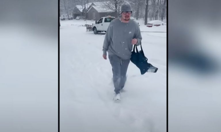 Ο πιτσαδόρος περπάτησε ένα χιλιόμετρο από το αυτοκίνητό του στη χιονοθύελλα για να κάνει την παράδοση - Όταν ένας αστυνομικός τον εντόπισε και το δημοσίευσε στο TikTok, τα φιλοδωρήματα έπεσαν «βροχή»
