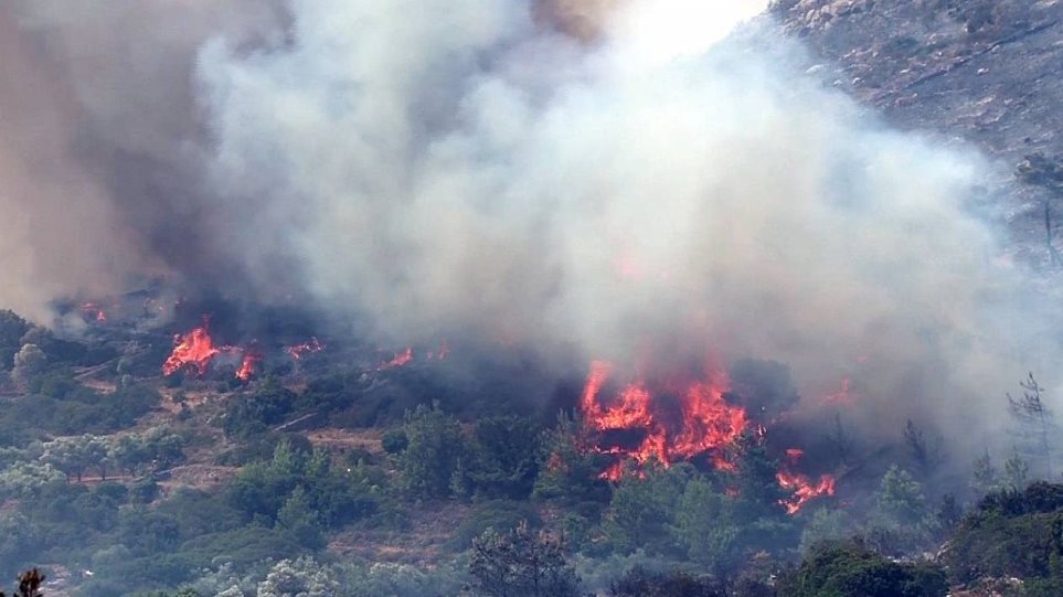 Η εστία της φωτιάς στον Όλυμπο, σύμφωνα με την Πυροσβεστική Υπηρεσία, είναι σε χαράδρα μήκους περίπου 3 χιλιομέτρων