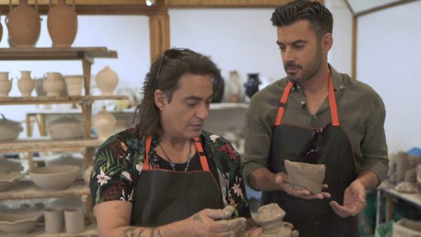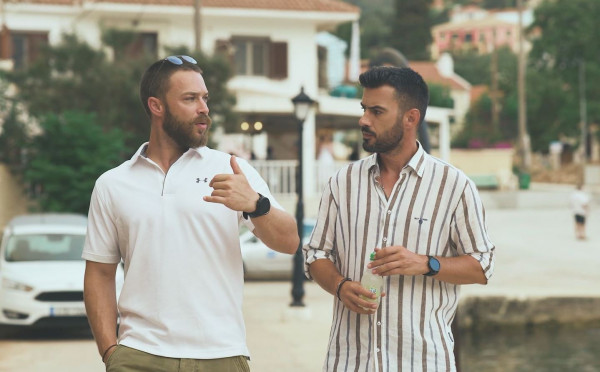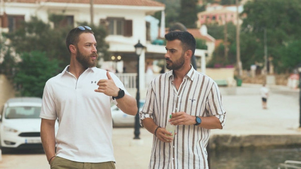 Το τραπέζι στρώνεται και ο Γιάννης Τσιμιτσέλης συζητά με τον Λάκη Λαζόπουλο σε ένα πολύ όμορφο σημείο, κάτω από τη σκιά και τη δροσιά των δέντρων.