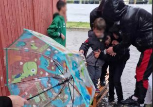 Τριτοκοσμικές εικόνες στα Τρίκαλα, όπου λόγω της κακοκαιρίας «Ilina» το 31ο νηπιαγωγείο γέμισε νερά στο προαύλιο.