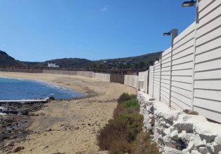 Πλήθος καταγγελιών, εντολές κατεδαφίσεων, φωτογραφίες και πανηγυρικές ανακοινώσεις και όμως ο «φράχτης της Μυκόνου» δεν έπεσε ακόμη. Η παραλία Πάνορμος παραμένει ερμητικά κλειστή για τους κατοίκους και επισκέπτες