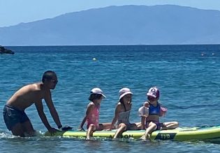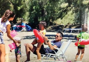 Η πολυμελής οικογένεια περνά πολλές ώρες στην παραλία με τα τρία παιδιά τους να χαίρονται τη θάλασσα και τον ήλιο.